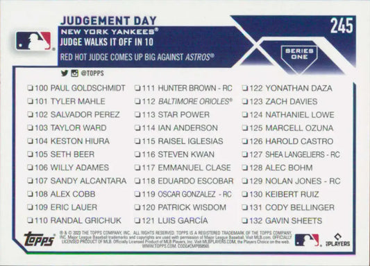 2023 Topps #245 Aaron Judge NM-MT New York Yankees Baseball Card