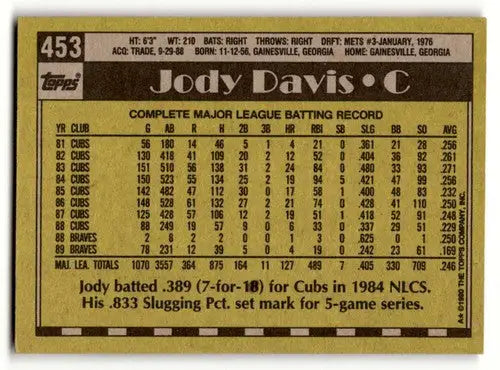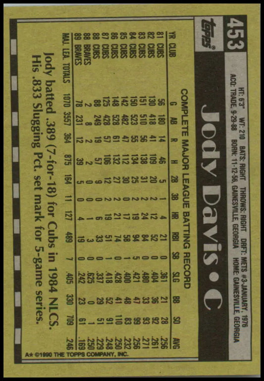 1990 Topps #453 Jody Davis NM-MT Atlanta Braves Baseball Card