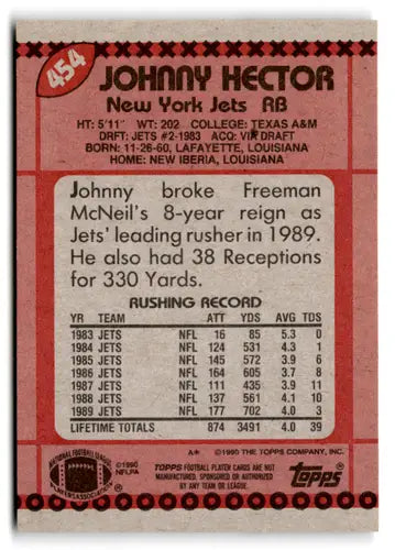 1990 Topps #454 Johnny Hector NM Near Mint NY Jets ID:73660