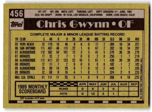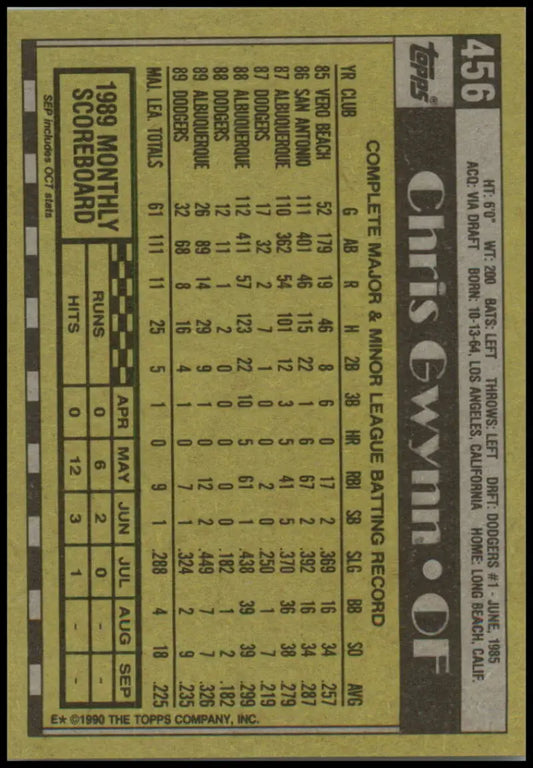 1990 Topps #456 Chris Gwynn NM-MT Los Angeles Dodgers Baseball Card