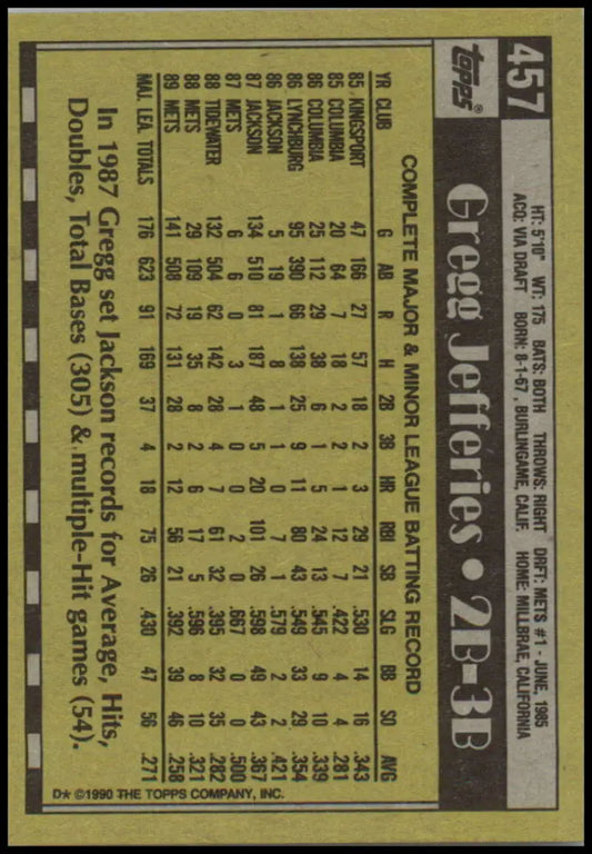 1990 Topps #457 Gregg Jefferies NM-MT New York Mets Baseball Card