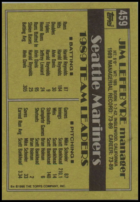 1990 Topps #459 Jim Lefebvre MG NM-MT Seattle Mariners Baseball Card