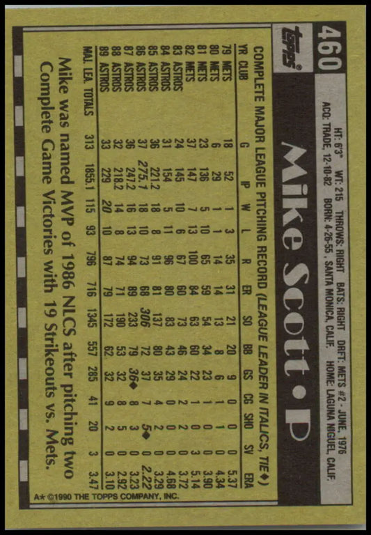 1990 Topps #460 Mike Scott NM-MT Houston Astros Baseball Card