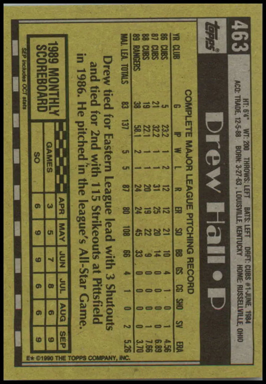 1990 Topps #463 Drew Hall NM-MT Texas Rangers Baseball Card