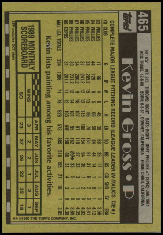1990 Topps #465 Kevin Gross NM-MT Montreal Expos Baseball Card