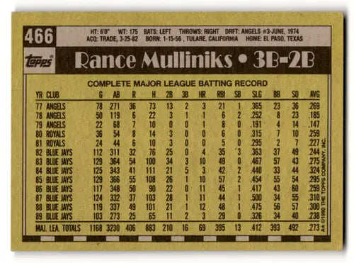 1990 Topps #466 Rance Mulliniks EX/NM Blue Jays ID:56550