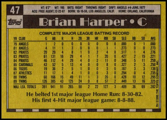 1990 Topps #47 Brian Harper NM-MT Minnesota Twins Baseball Card