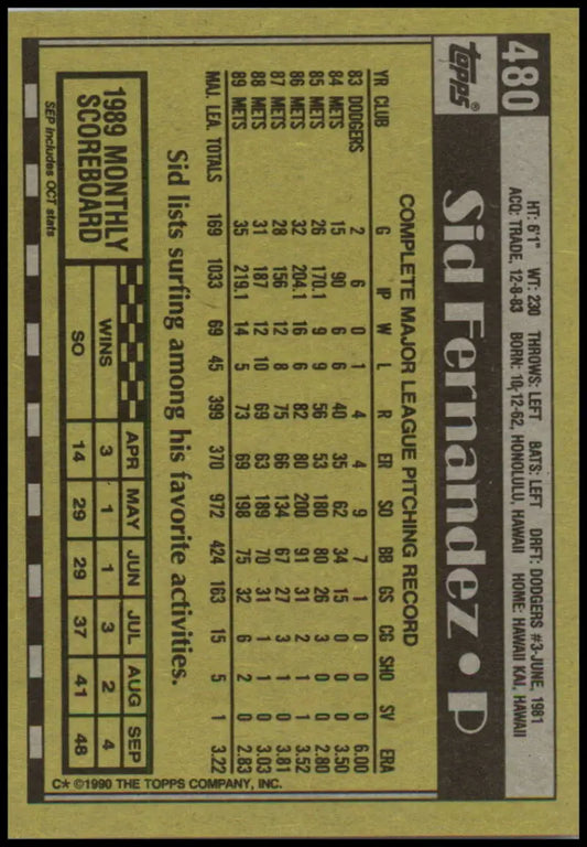 1990 Topps #480 Sid Fernandez NM-MT New York Mets Baseball Card