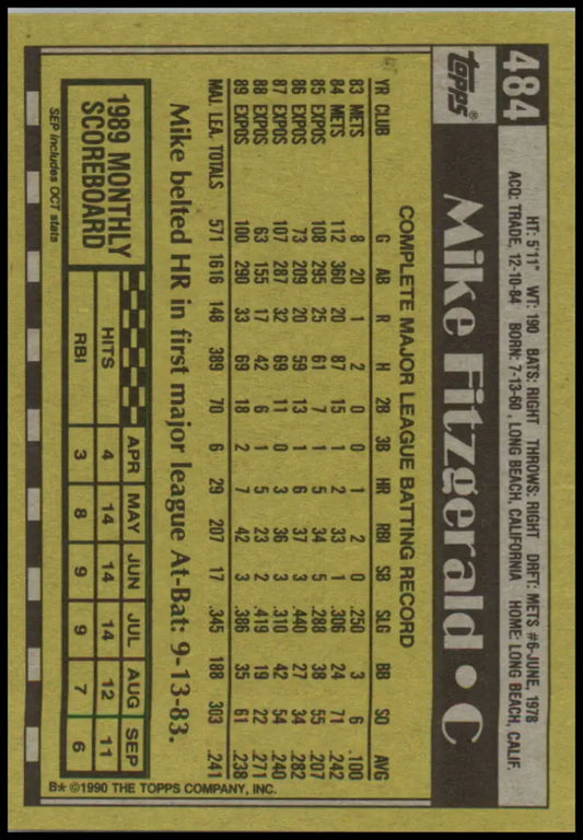 1990 Topps #484 Mike Fitzgerald NM-MT Montreal Expos Baseball CardRegular price $0.79 USDRegular priceUnit price / per-