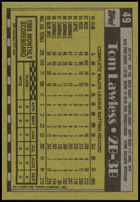 1990 Topps #49 Tom Lawless EX/NM Blue Jays ID:56531Regular price $1.70 USDRegular priceUnit price / per-