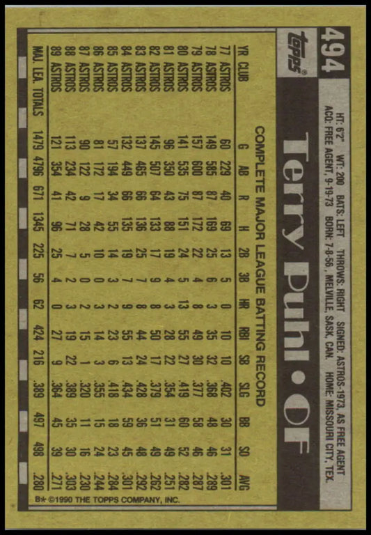 1990 Topps #494 Terry Puhl Houston Astros Baseball Cards EX/NM ID:55629Regular price $1.70 USDRegular priceUnit price / per-