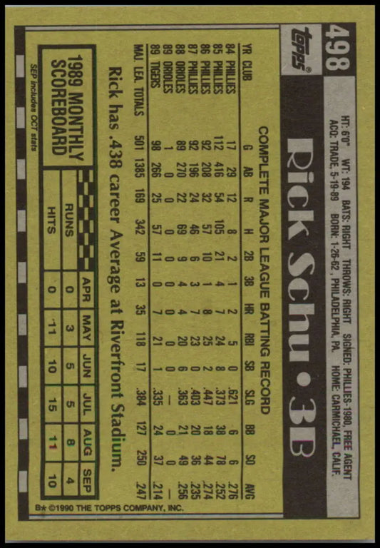 1990 Topps #498 Rick Schu NM-MT Detroit Tigers Baseball CardRegular price $0.79 USDRegular priceUnit price / per-