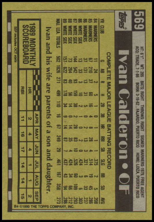 1990 Topps #569 Ivan Calderon NM-MT Chicago White Sox Baseball CardRegular price $0.79 USDRegular priceUnit price / per-