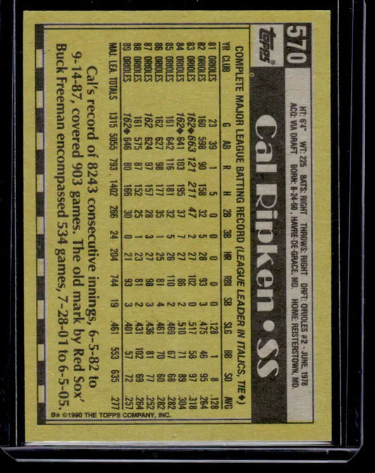1990 Topps #570 Cal Ripken Baltimore Orioles NM-MT Baseball CardRegular price $1.49 USDRegular priceUnit price / per-