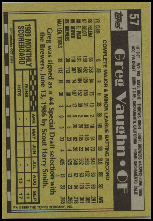 1990 Topps #57 Greg Vaughn NM-MT Milwaukee Brewers Baseball CardRegular price $0.89 USDRegular priceUnit price / per-
