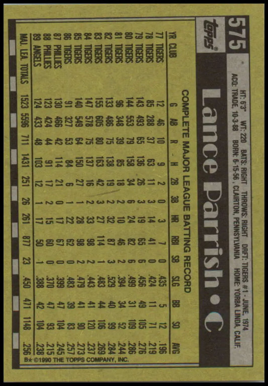 1990 Topps #575 Lance Parrish NM-MT California Angels Baseball CardRegular price $0.79 USDRegular priceUnit price / per-