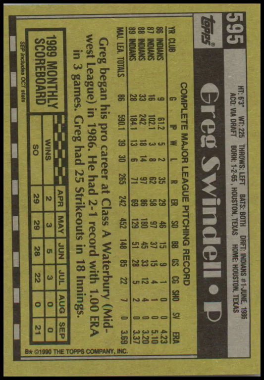 1990 Topps #595 Greg Swindell NM-MT Cleveland Indians Baseball CardRegular price $0.79 USDRegular priceUnit price / per-