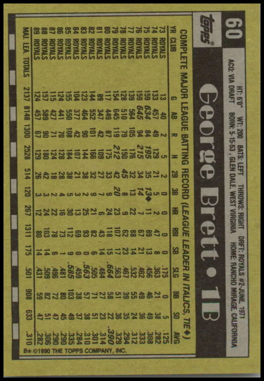 1990 Topps #60 George Brett NM-MT Kansas City Royals Baseball CardRegular price $1.09 USDRegular priceUnit price / per-