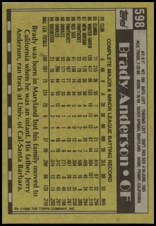 1990 Topps #598 Brady Anderson NM-MT Baltimore Orioles Baseball CardRegular price $0.79 USDRegular priceUnit price / per-