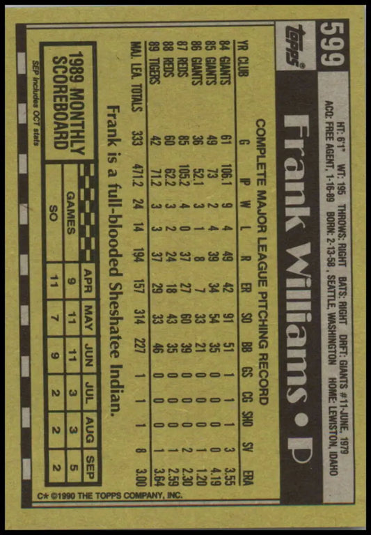 1990 Topps #599 Frank Williams NM-MT Detroit Tigers Baseball CardRegular price $0.79 USDRegular priceUnit price / per-