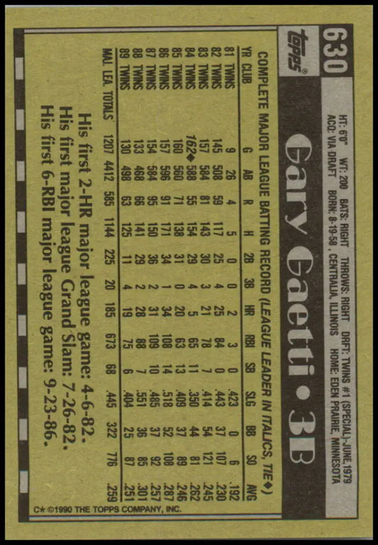 1990 Topps #630 Gary Gaetti NM-MT Minnesota Twins Baseball Card