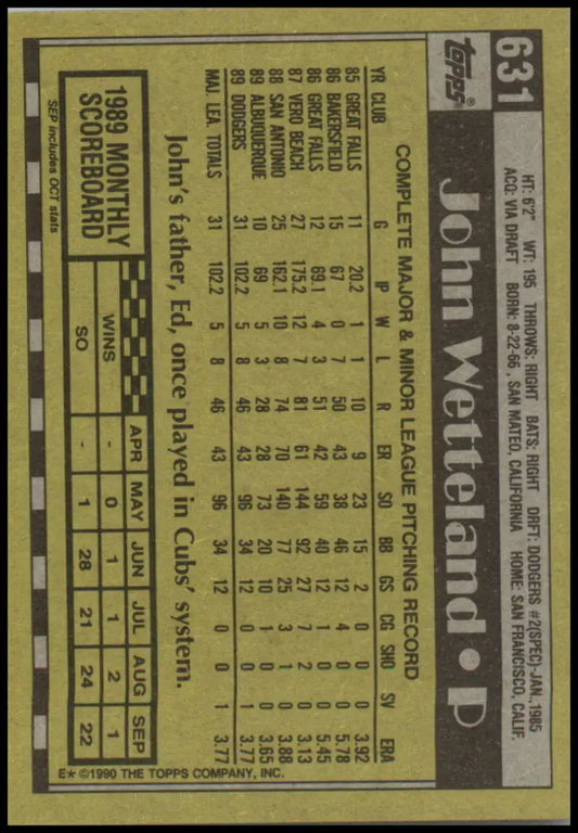 1990 Topps #631 John Wetteland NM-MT Los Angeles Dodgers Baseball Card