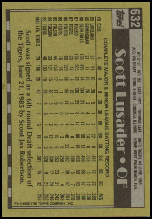 1990 Topps #632 Scott Lusader NM-MT Detroit Tigers Baseball Card