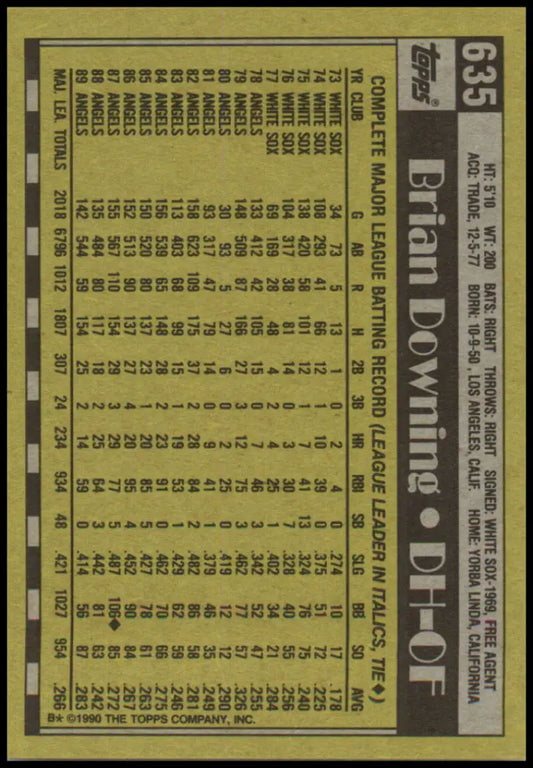 1990 Topps #635 Brian Downing NM-MT California Angels Baseball Card