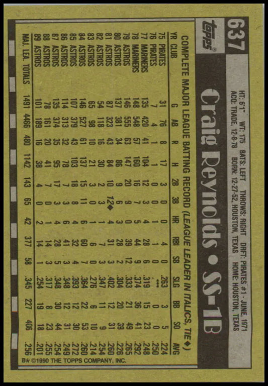 1990 Topps #637 Craig Reynolds EX/NM Astros ID:56536