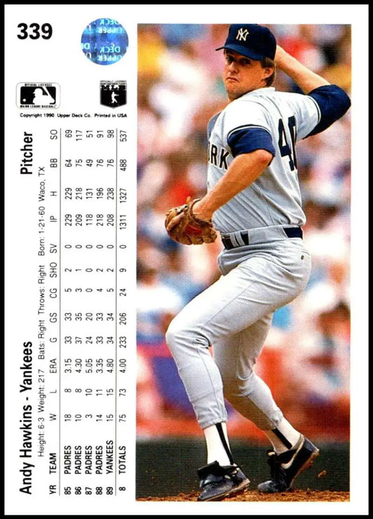 1990 Upper Deck #339 Andy Hawkins NM-MT New York Yankees Baseball Card