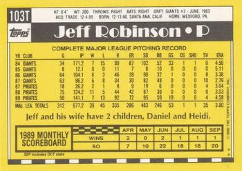 1990 Topps Traded #103T Jeff Robinson New York Yankees Baseball Card ID:53955