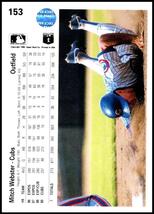 1990 Upper Deck #153 Mitch Webster NM-MT Chicago Cubs Baseball Card