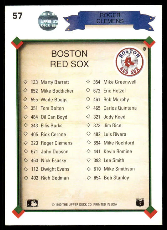 1990 Upper Deck #57 Roger Clemens EX/NM Boston Red Sox Baseball Card