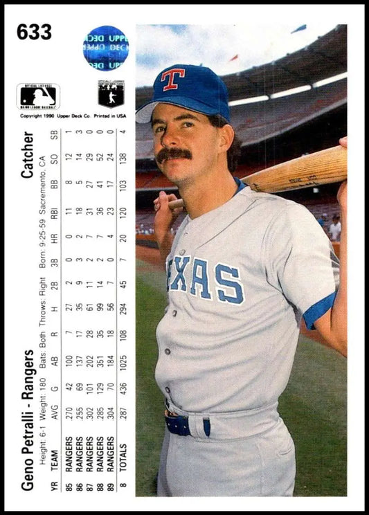 1990 Upper Deck #633 Geno Petralli UER NM-MT Texas Rangers Baseball Card