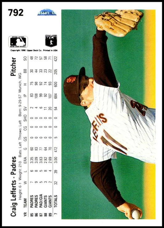 1990 Upper Deck #792 Craig Lefferts NM-MT San Diego Padres Baseball Card
