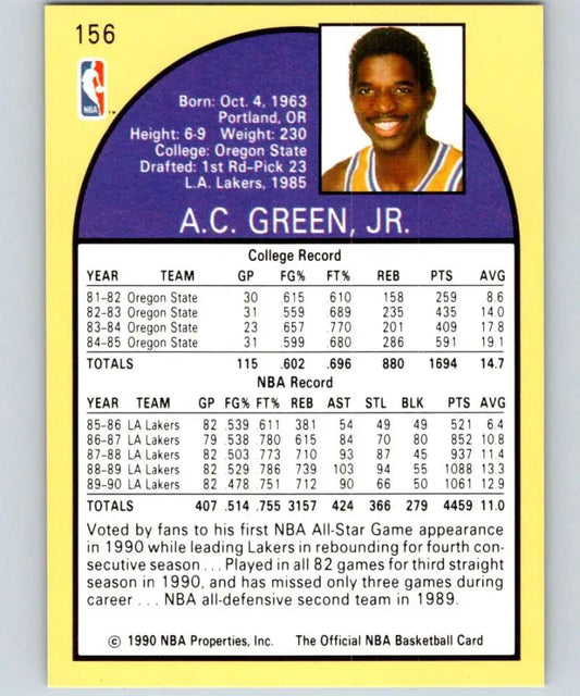 1990-91 Hoops #156 A.C. Green NM-MT Los Angeles Lakers Basketball Card