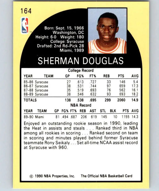 1990-91 Hoops #164 Sherman Douglas NM-MT RC Rookie Miami Heat Basketball Card