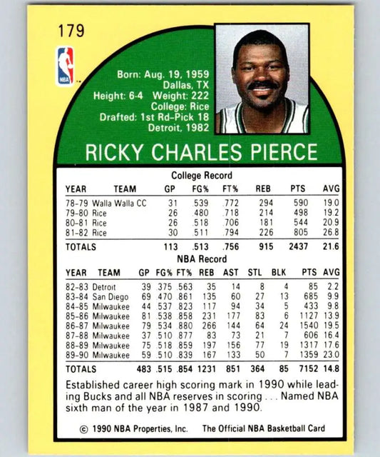 1990-91 Hoops #179 Ricky Pierce NM-MT Milwaukee Bucks Basketball Card