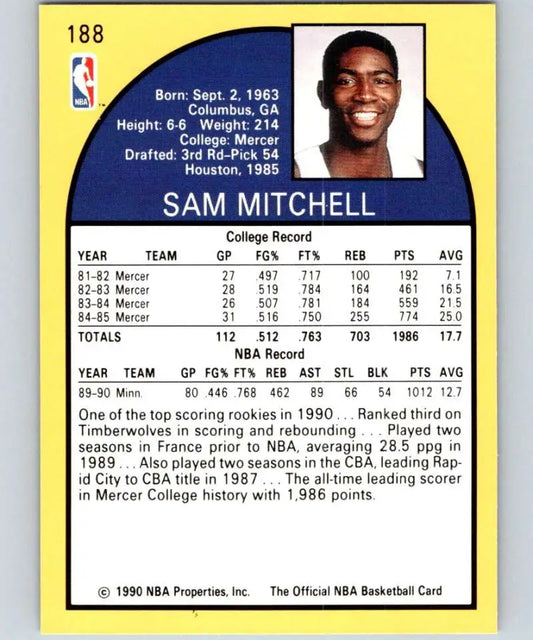 1990-91 Hoops #188 Sam Mitchell NM-MT RC Rookie Minnesota Timberwolves Basketball Card