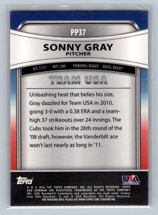 2010 Bowman Platinum #PP37 Sonny Gray Prospects Oregon Ducks