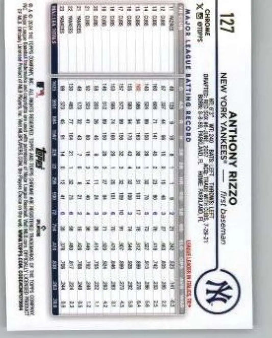 2024 Topps Chrome #127 Anthony Rizzo NM-MT New York Yankees Baseball Card