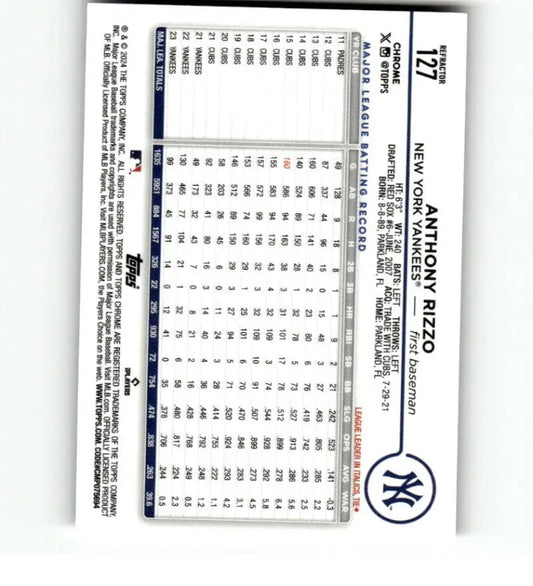 2024 Topps Chrome Refractor #127 Anthony Rizzo NM-MT New York Yankees Baseball Card