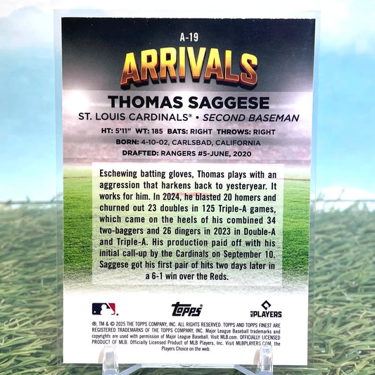 2025 Topps Finest Thomas Saggese Arrivals Sky Blue /150 RC #A-19 Cardinals