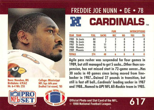 1990 Pro Set #617 Freddie Joe Nunn NM-MT Phoenix Cardinals Football Card