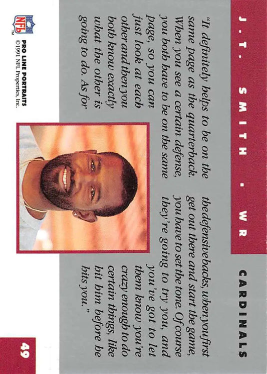 1991 Pro Line Portraits #49 J.T. Smith EX-NM Phoenix Cardinals Football Card