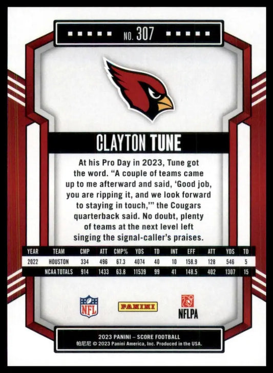 2023 Score Rookie Clayton Tune #307 Arizona Cardinals Football Card NFL Sports