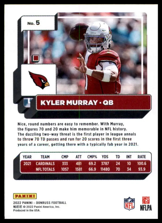 Kyler Murray 2022 Donruss #5 Arizona Cardinals