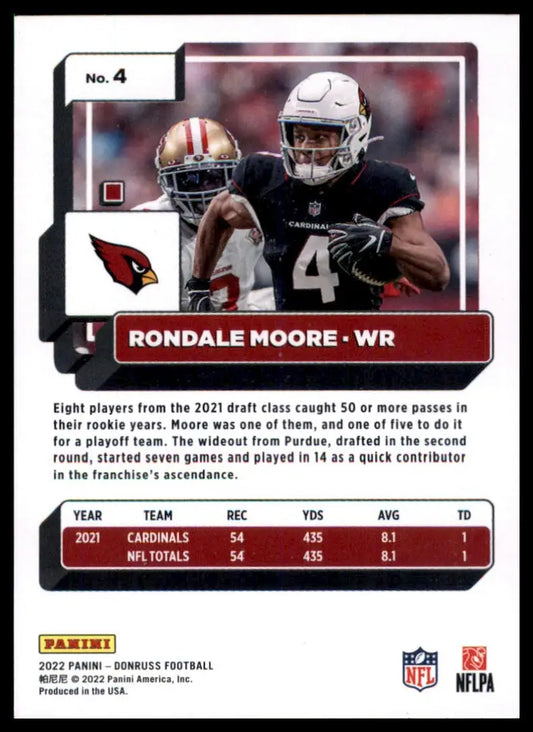 Rondale Moore 2022 Donruss #4 Arizona Cardinals