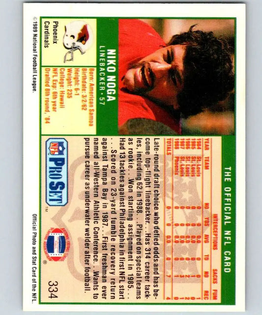 1989 Pro Set #334 Niko Noga NM-MT RC Rookie Phoenix Cardinals Football Card