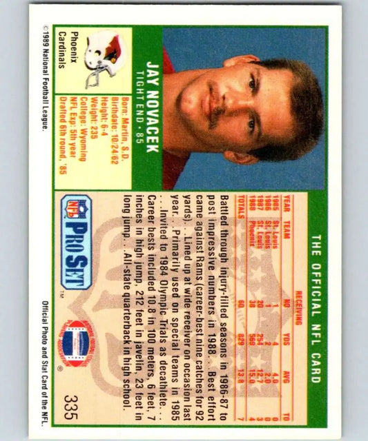 1989 Pro Set #335 Jay Novacek NM-MT RC Rookie Phoenix Cardinals Football Card
